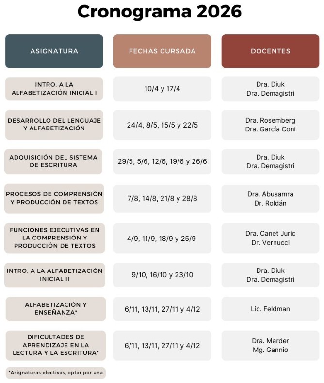 – Diplomado/a de Posgrado en Enfoques actuales sobre el proceso de alfabetización
